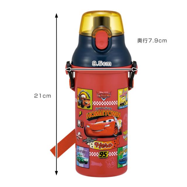 水筒 480ml 直飲プラワンタッチボトル カーズ26 ( 子供用 プラスチック製 ダイレクトボトル 直飲み ワンタッチ 日本製 ショルダーベルト付き 広口 軽量 ボトル ワンプッシュ )