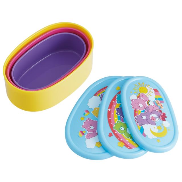 弁当箱 3個セット シール容器 ケアベア スケート ( レンジ対応 保存容器 3個組 ランチボックス 日本製 レンジOK 弁当 お弁当 果物ケース デザートケース フルーツケース )