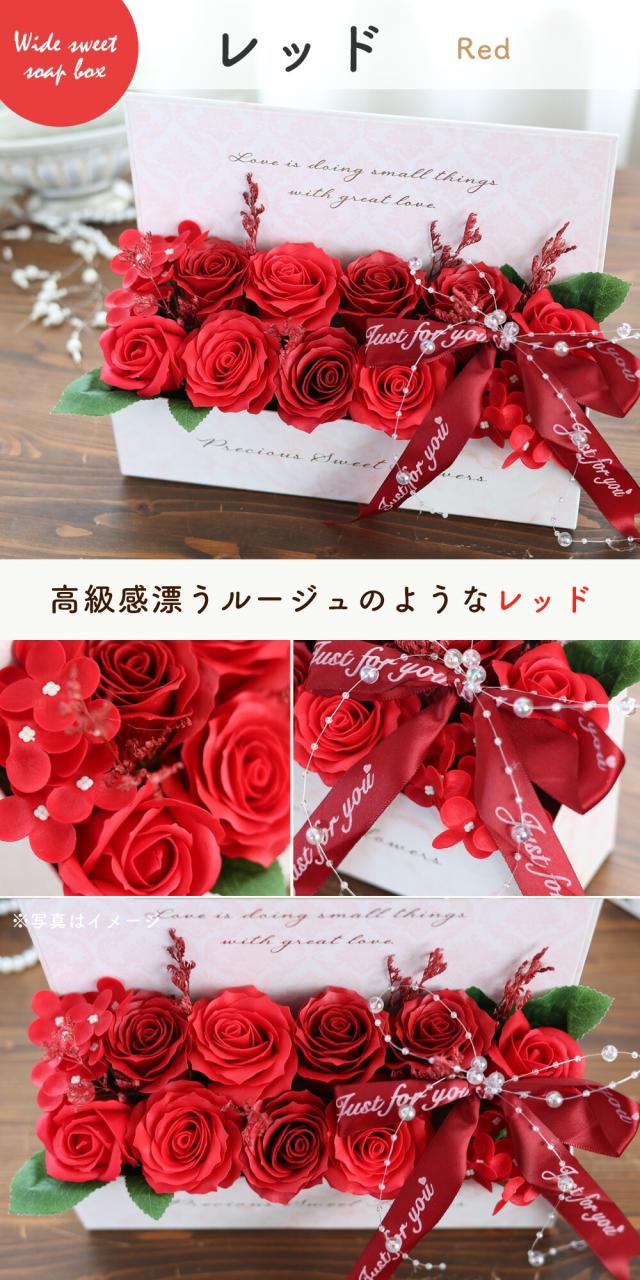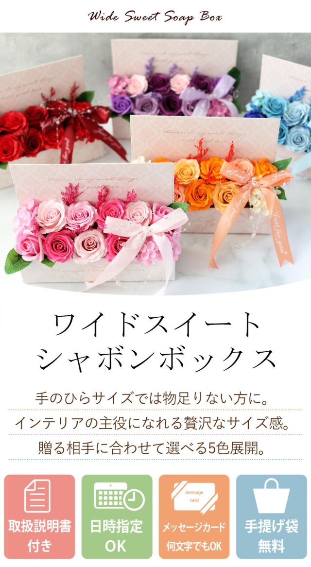 翌日配達 ソープフラワー ワイドスイートシャボンボックス 選べる5カラー ボックスアレンジ バラ 花 誕生日 プレゼント 女性 結婚祝い フラワーギフト おしゃれ お誕生日 お花 結婚記念日 妻 お祝い 花 贈り物 花 ギフトプレゼント