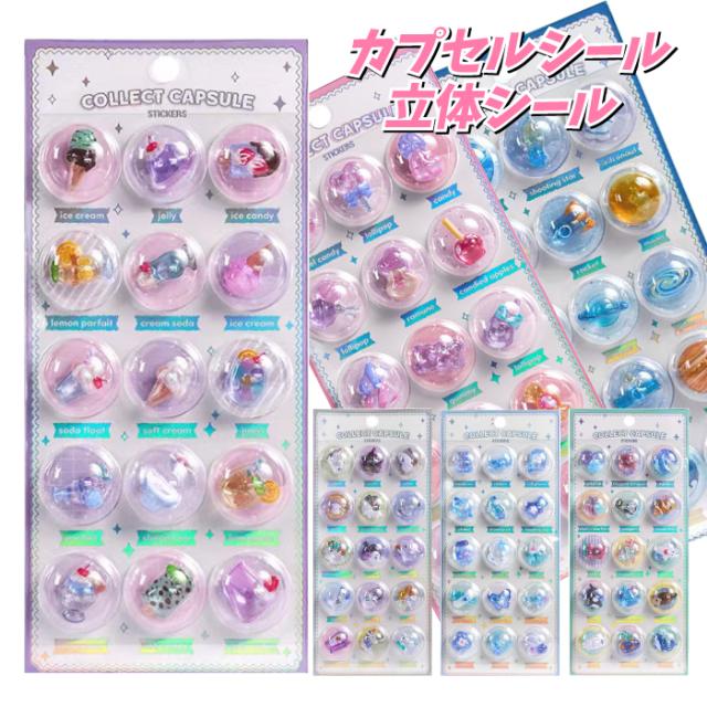 ぶっくり 3D カプセルシール 食べ物 立体シール おはじき シール 立体 かわいいぷっくりシール シール キャラクター 女の子 立体シール 立体 アニマル シール帳 ドロップ 平成女児 アイス キャンディー プリン 宇宙 おばけ ペンギン クラゲ クジラ クリオネラッコ