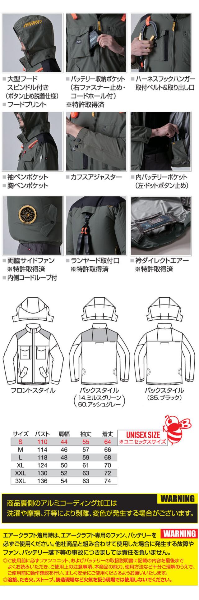 [旧型 アウトレット価格]バートル BURTLE エアークラフト長袖ブルゾン(ファンなし) AC1151 AIRCRAFT