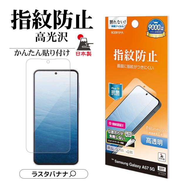 【送料無料】Galaxy A57 5G フィルム 全面保護 高光沢 指紋防止 高透明 クリア 割れない 日本製 抗菌 貼り付けガイド 指紋認証対応 高感度 ギャラクシー 保護フィルム G5257GA57 ラスタバナナ