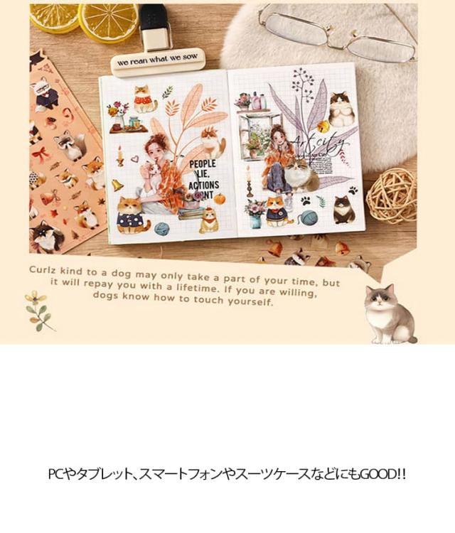 ネコ シール 防水 耐水 シール ステッカー キャラクター ねこ 猫 猫シール いぬ シール 犬 かわいい シール ステッカー イヌ PC タブレット スマートフォン スーツケース 手帳 デコ スケジュール帳 日記帳 ガイドブック メモ 封筒 小袋 お手紙 シール 送料無料
