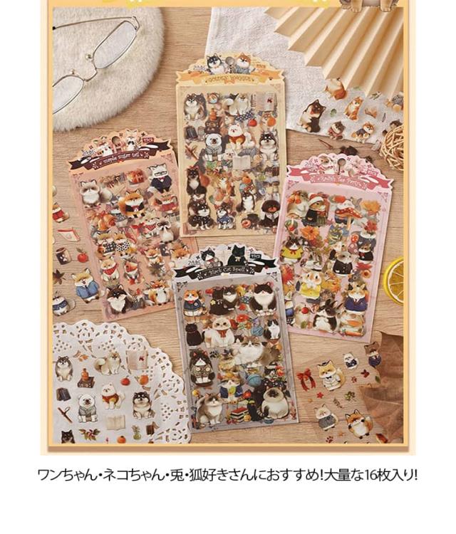 | ワンちゃん・ネコちゃん・兎・狐好きさんにおすすめ!大量な16枚入り! PCやタブレット、スマートフォンやスーツケースなどにもGOOD!! 手帳デコ、スケジュール帳、日記帳、ガイドブック、メモ用紙にと、 封筒、小袋やお手紙の封かんシールとして使ったり、 贈り物、プレゼントのラッピング、手作り品や小物の包装、空箱などどこでもペタペタ貼れてとっても便利です。 | |