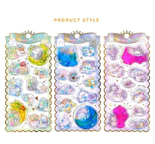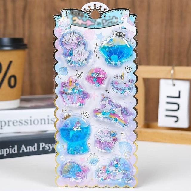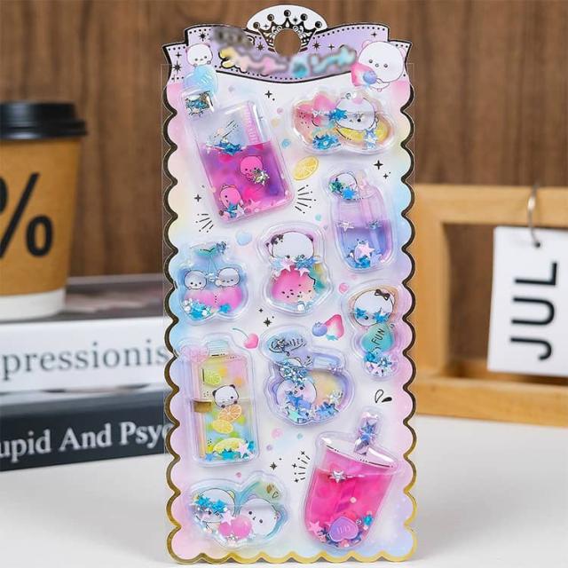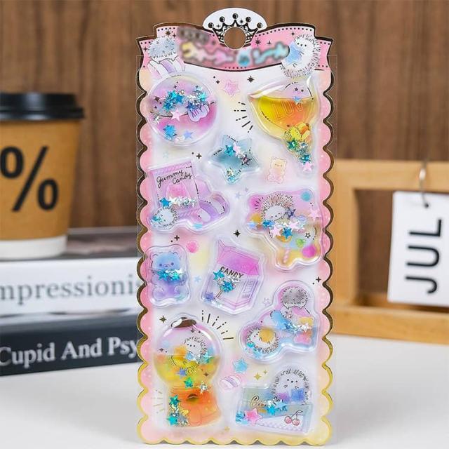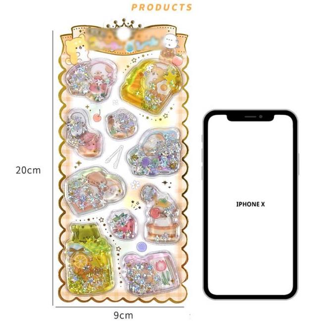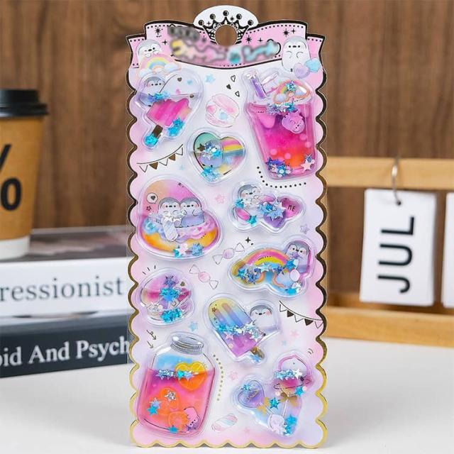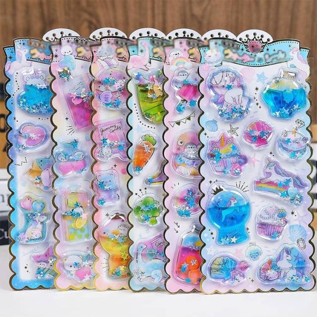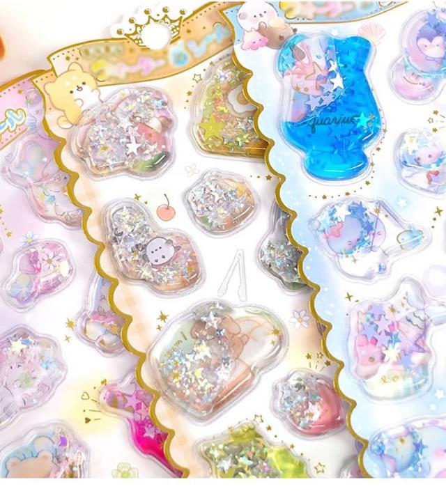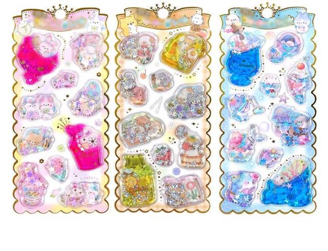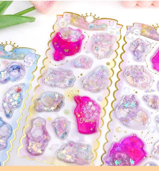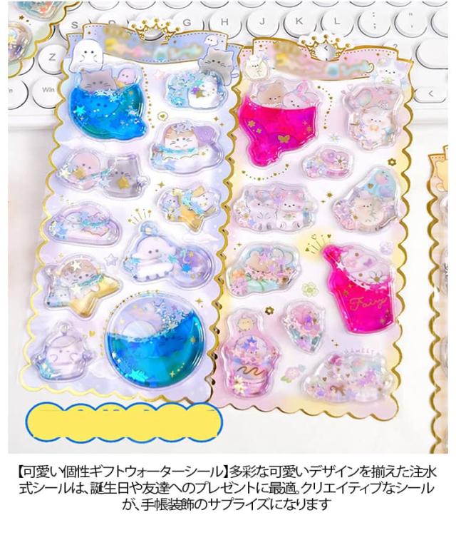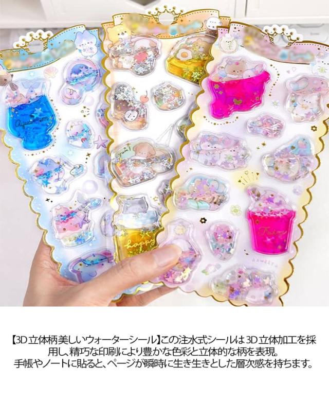 4枚セット 水入り ウォーターイン ウォーター 水入り可愛い ぷくぷく 3D 立体 ステッカー 透明 ウォーターセット 大人 子供 女の子 ボンボン かわいい キラキラ 2026 新品 送料無料