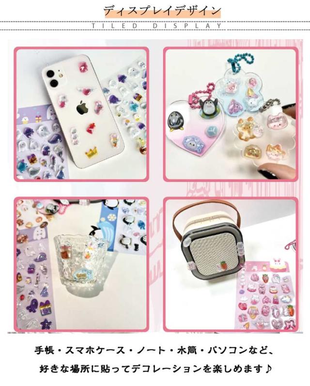 【6点セット】3D 立体シール ぷくぷくシール シール帳 かわいい ごほうびシール DIY用 手帳用 手帳 日記帳用 スマホケース 携帯電話 装飾 水筒 ノート デコ 女の子 文具 デコシール SNS人気 子供 大人 入園祝い 誕生日 クリスマス プレゼント