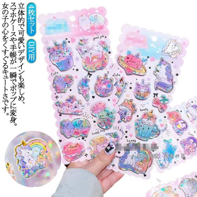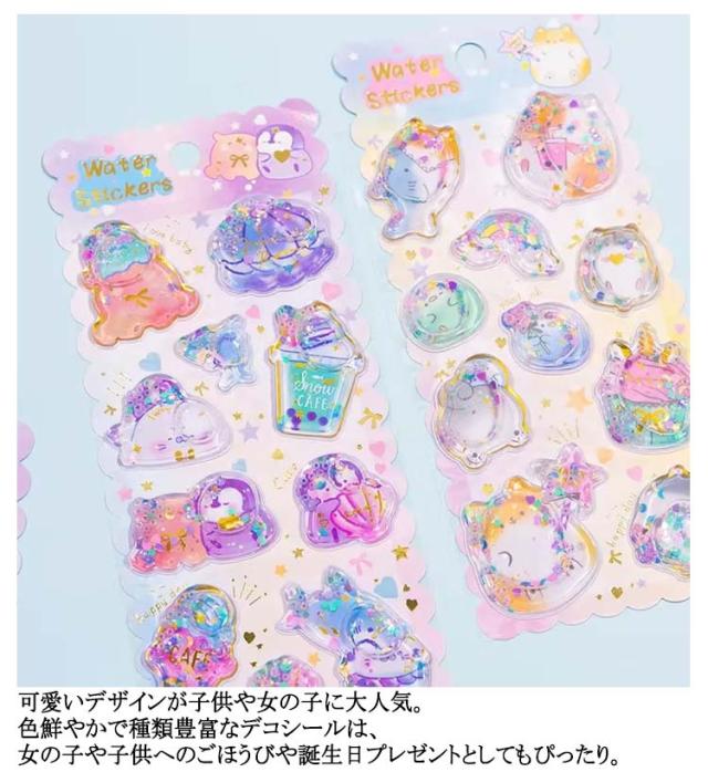 シール帳 ぷっくりシール 可愛い DIY用 シール シール交換 装飾用 【4枚セット】ウォーターシール ご褒美シール 女の子 3Dシール 小学生 ぷくぷくシール ノート 手帳 ステッカーデコ 手作り 3Dステッカー 立体シール 誕生日 クリスマス 手芸用品 透明感