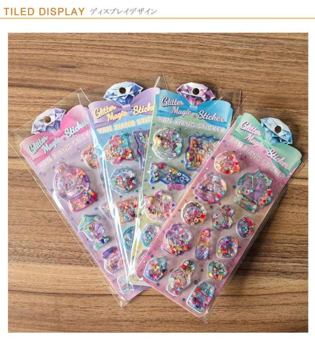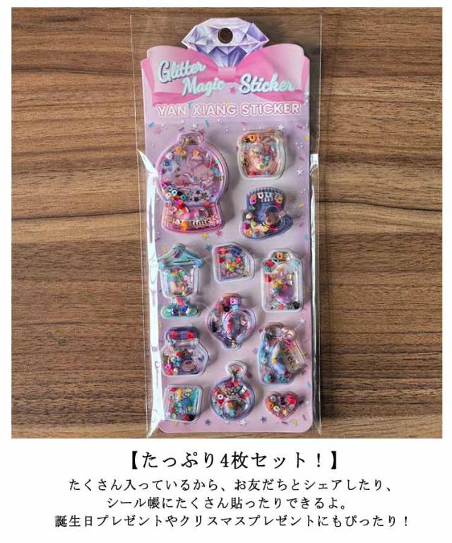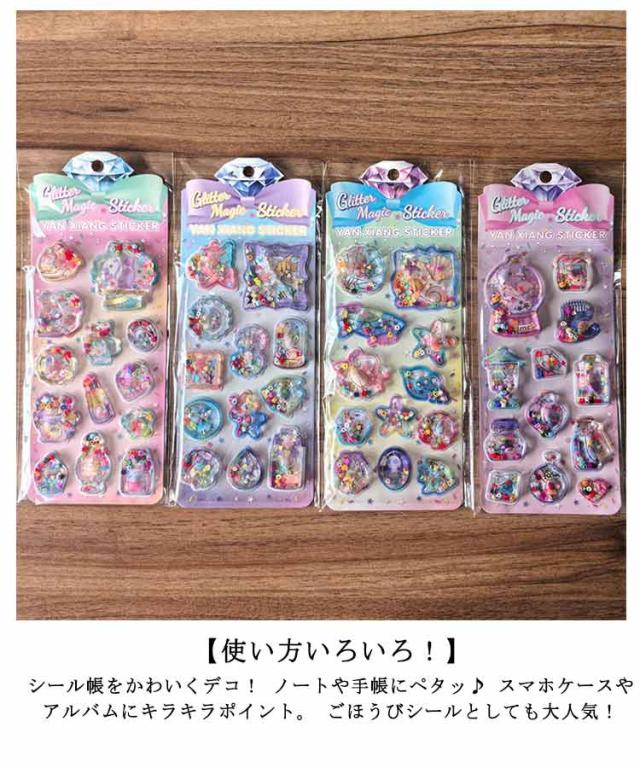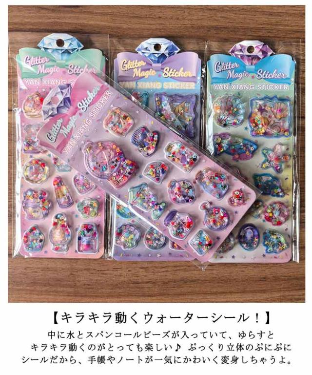 ウォーターシール キャラクター ぷっくりシール 4枚セット 水入りシール 水揺れシール ぷっくり シール ぷくぷくシール 3D立体 ごほうびシール ビーズ入り 可愛い デコシール 女の子 手帳 ノート アルバム 水筒 デコレーション 送料無料