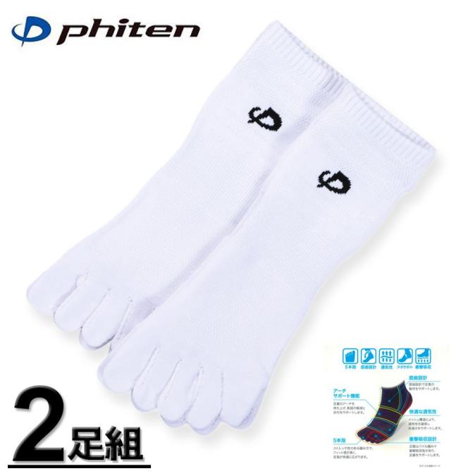 大きいサイズ Phiten ファイテン 2足組 5本指 アンクル スポーツ ソックス 靴下 ホワイト 27〜29cm/1249-6242-1-16