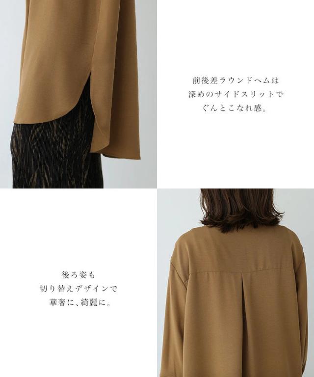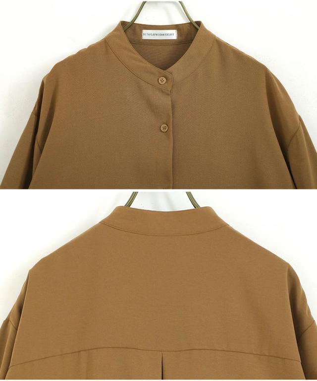 首元はすっきりバンドカラー。
