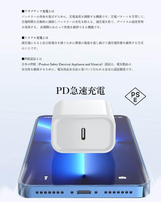 ■取扱商品の特徴: 充電器 急速 タイプC Lightning iPhone アダプター バッテリー USB コンセント アイフォン type-c USB-C コンパクト 旅行 トラベル 出張 出先 PSE認証済み ABS PC アクティブ充電 トリクル充電 急速充電サポート acアダプター 20W 240V スタイリッシュ シンプル カンタン 便利 スピードアップ 緊急時 災害時 防災 iPhone15/15 Pro/15 Pro Max/15 Plus/14/13/12/11/X/iPad/Android対応 F ホワイト 白 iphone03