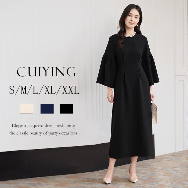 このロングワンピースは、入学式、卒業式、入園式、そして結婚式やお宮参り、七五三などの特別なイベントに最適なデザインが魅力です。特にママや母の方々を意識したシルエットは、体型を美しくカバーし、自信を持って着用できるスタイルを提供します。シックな黒のカラーリングは、フォーマルな場面で常に上品な印象を与え、華やかさを演出します。