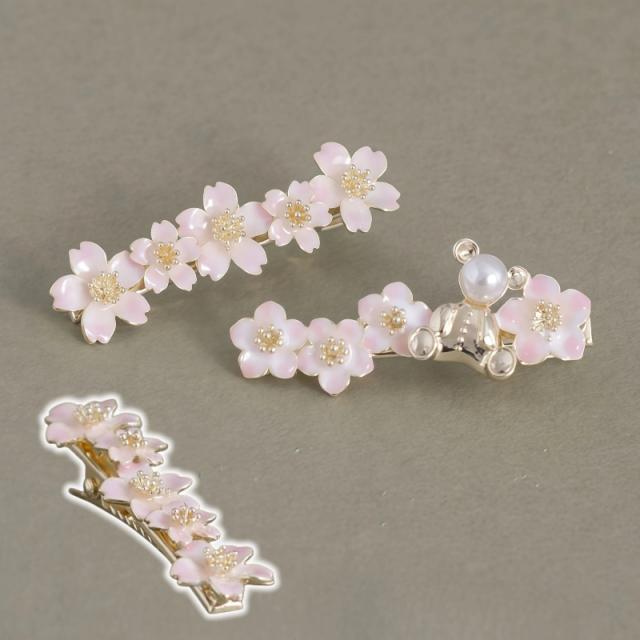 ヘアクリップ 桜 さくら ダッククリップ 春 夏 お花見 ピクニック 前髪クリップ サイドクリップ 学生 少女 可愛い ガーリー 髪飾り ヘアアクセサリー レディース おしゃれ ヘア小物