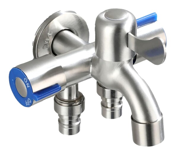 コンパクトな洗濯機用3分岐蛇口、三又分岐水栓金具です。洗濯機、バスルーム、キッチン、庭や屋外の散水や洗浄などに役立ちます。