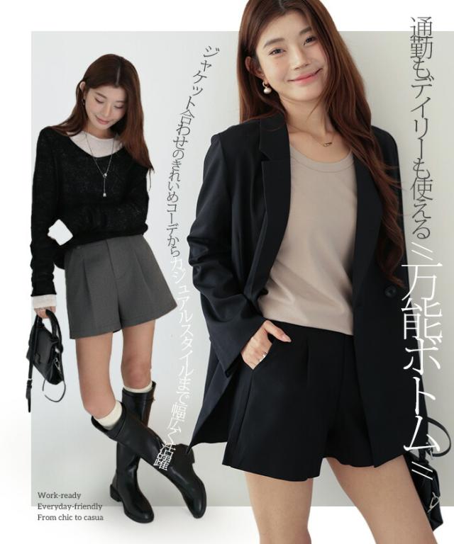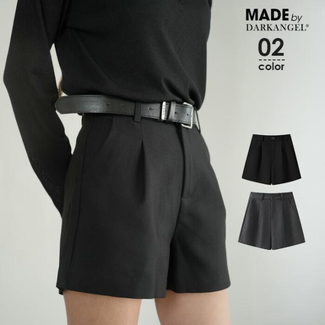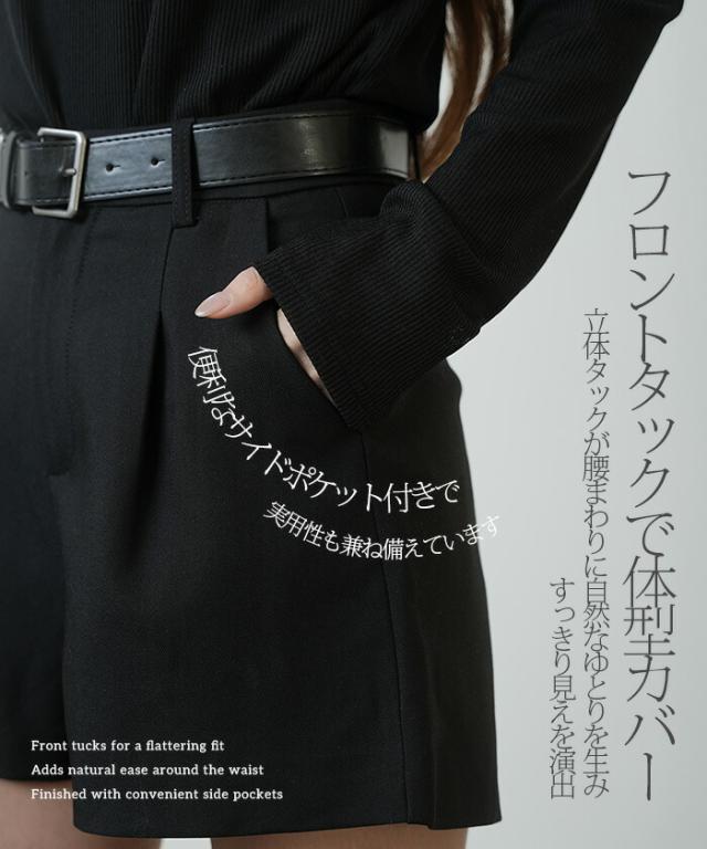 1,500円OFFクーポン!ショートパンツ レディース スーツショートパンツ ハイウエストショートパンツ タックショートパンツ テーラードショートパンツ きれいめ 美脚 脚長 細見え 【テーラードショートパンツ】 ダークエンジェル