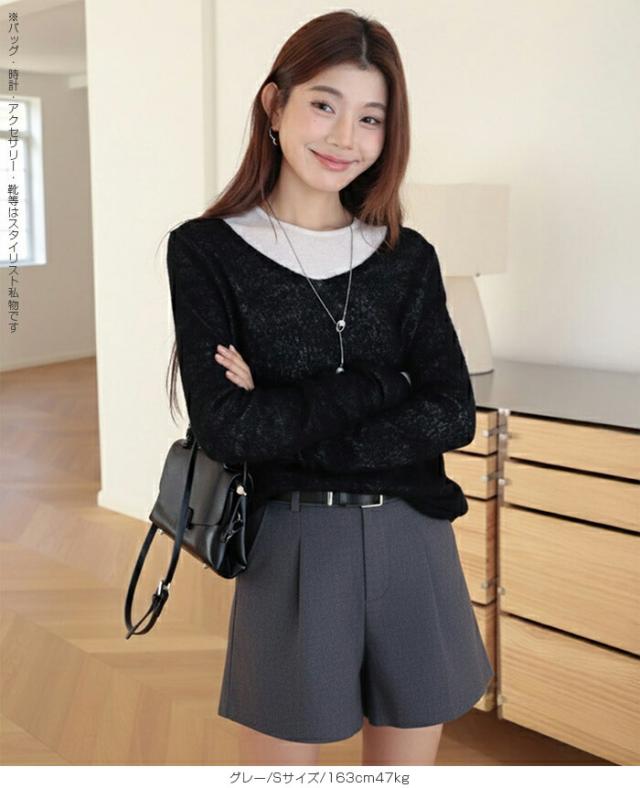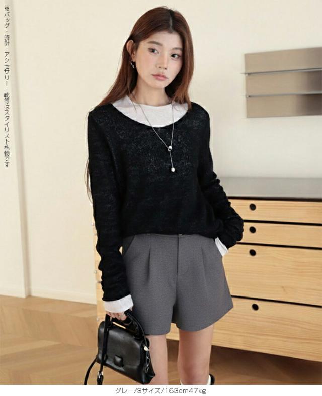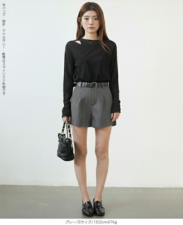 【ハイウエストタックショートパンツ】 ウエストベルトと立体タックがポイントの、 きれいめに穿ける大人ショートパンツ。 ハイウエスト設計と程よく広がるシルエットが 脚をすっきり長く見せ、バランスの良いスタイリングを叶えます。 シンプルながらも上品な印象で、 カジュアルからきれいめまで幅広く活躍する一枚です。 《商品ポイント》 ・裏地付きで安心して着用可能 ・両サイドポケット付き ・立体タック入りのきれいめデザイン ・シンプルなウエスト仕様 ・通勤コーデにも使える上品な印象 《デザイン・シルエット》 ウエストまわりをすっきり見せるテーラードデザイン。 フロントタックが自然な立体感を生み、腰まわりをカバーします。 裾に向かってほんのり広がるシルエットで、 脚のラインを拾いにくくバランスよく見せてくれます。 《コーディネート提案》 ・ジャケット合わせでセットアップ風スタイル ・ブラウス合わせできれいめコーデ ・ニット合わせで大人カジュアルに ・Tシャツ合わせでシンプルコーデ オン・オフ問わず使える万能ボトムです。 《サイズ・カラーバリエーション》 サイズ:S/M/L/XL カラー:グレー/ブラック 《素材・機能性》 ・裏地付き ・ポケット付き ・ほどよいハリ感のある素材 ・型崩れしにくい生地感 ・ロングシーズン着用可能 |