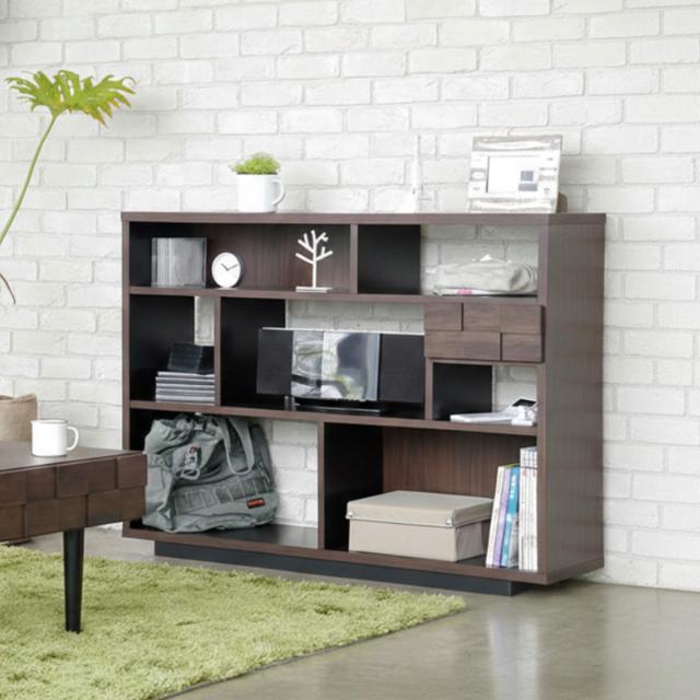 ランダムな仕切りが存在感を放つオープンラック 幅125cm
