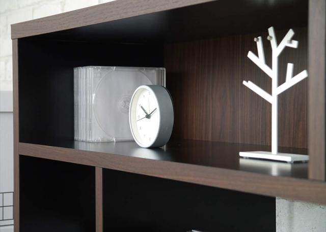 ランダムな仕切りデザインが特徴的なオープンラックです。CDや文庫本などの小さなものからA4サイズまで、幅広いサイズを収納できます。オープンタイプなので、お気に入りの小物をディスプレイして楽しむのもおすすめです。
