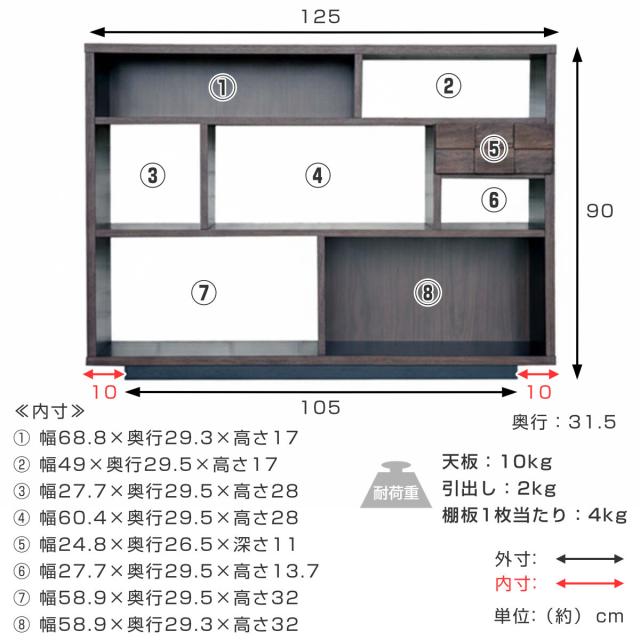 | サイズ | 約 幅125×奥行31.5×高さ90(cm) |