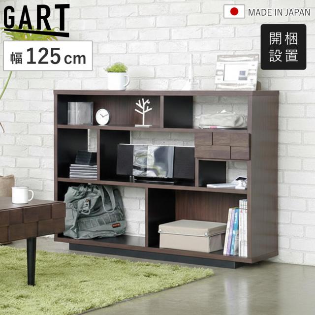 オープンラック 幅125cm 引き出し 木目調 日本製 完成品 シェルフ 収納棚 ( 開梱設置 オープンシェルフ ラック 棚 飾り棚 組み合わせ 収納 家具 A4対応 本棚 省スペース 背面化粧 )