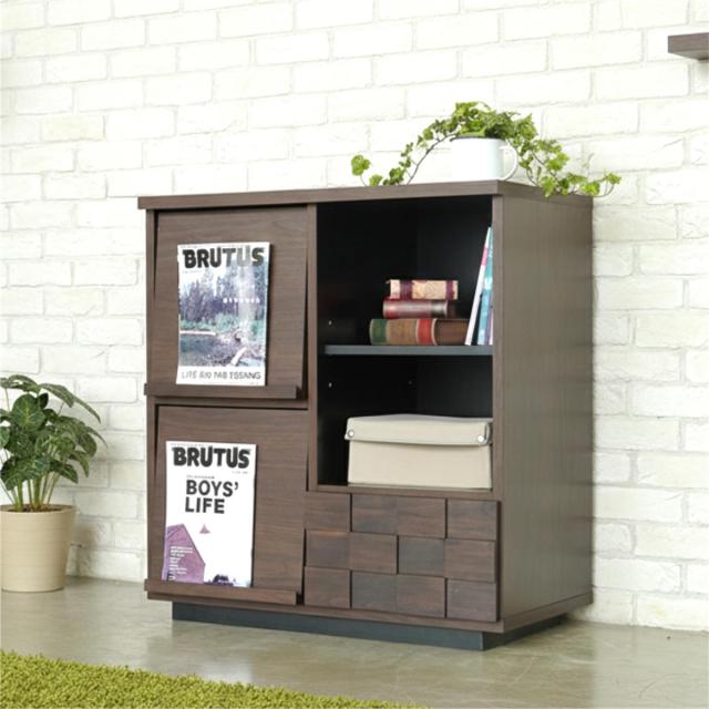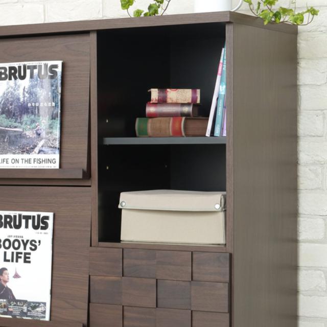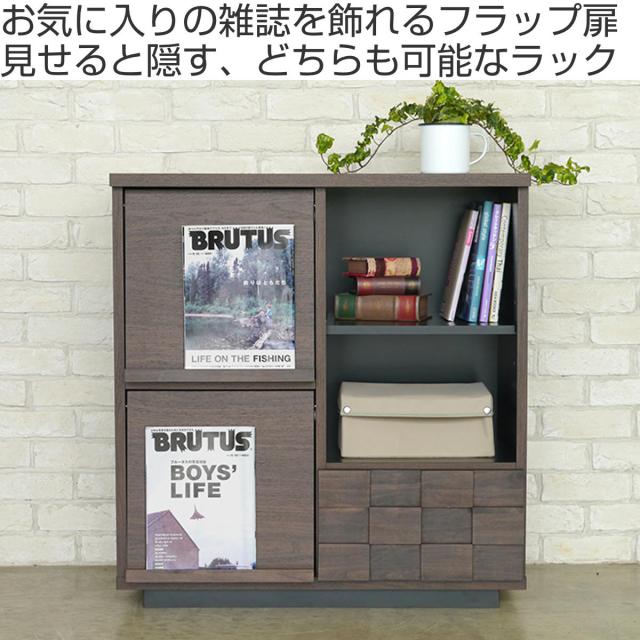 マガジンラック 幅80cm 木目調 日本製 フラップ扉 本棚 ディスプレイラック 収納棚 ( 開梱設置 ラック ディスプレイ 棚 飾り棚 組み合わせ 収納 家具 A4対応 省スペース 背面化粧 可動棚 )