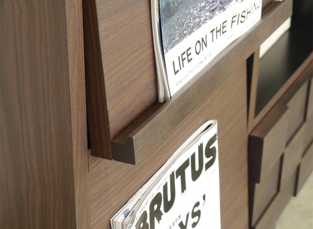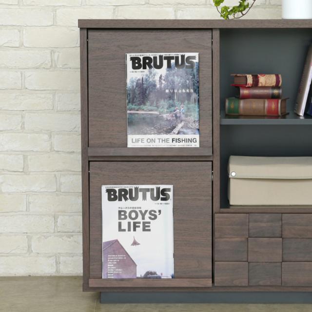 フラップ扉の前板部分はA4サイズ対応。表紙を見せて飾っておきたいお気に入りの雑誌をディスプレイするのにぴったりです。