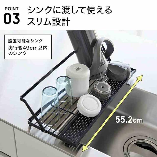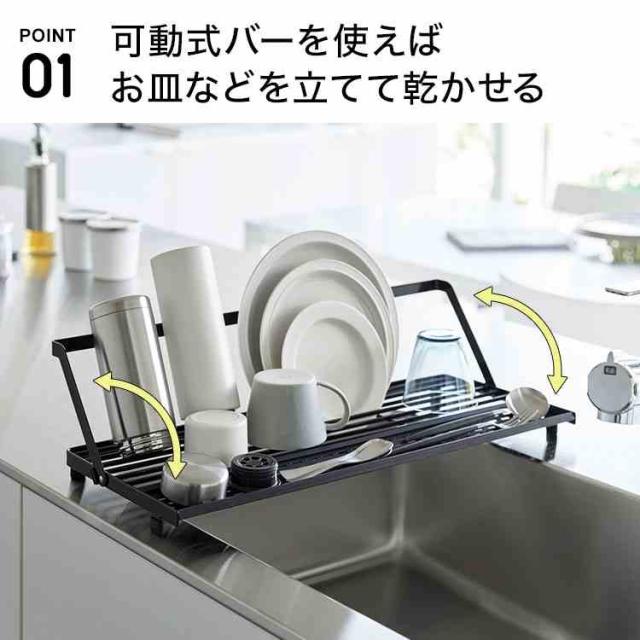 山崎実業 シンク上スリム水切りラック タワー シリコーントレー付き 公式 tower 10581 101582 ホワイト ブラック 水切りラック シンク上 スリム 水切りスタンド 水切りかご キッチン ラック シンプル おしゃれ 水筒 哺乳瓶 乾燥 省スペース L型 食器 折りたたみ 一人暮らし