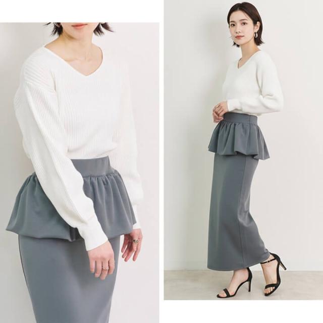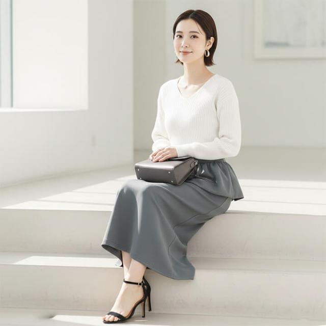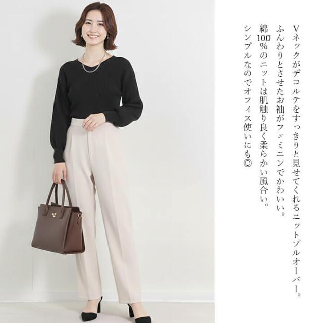 Vネックがデコルテをすっきりと見せてくれるニットプルオーバー。
