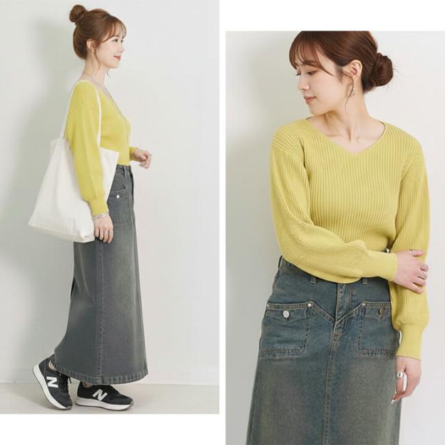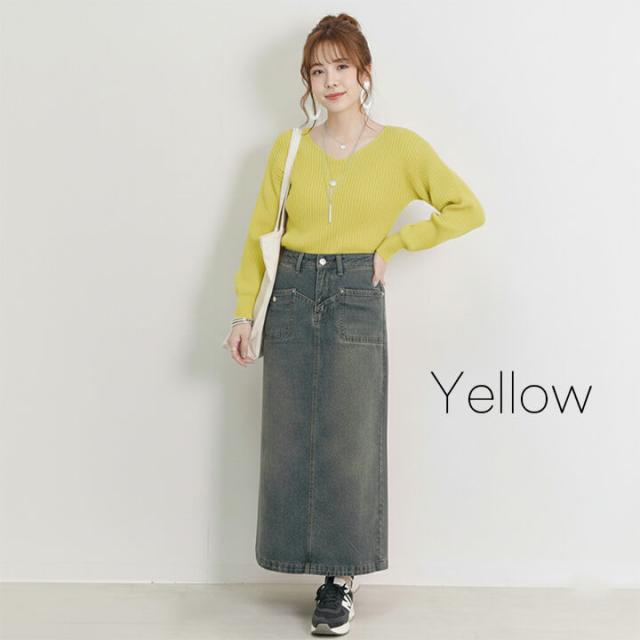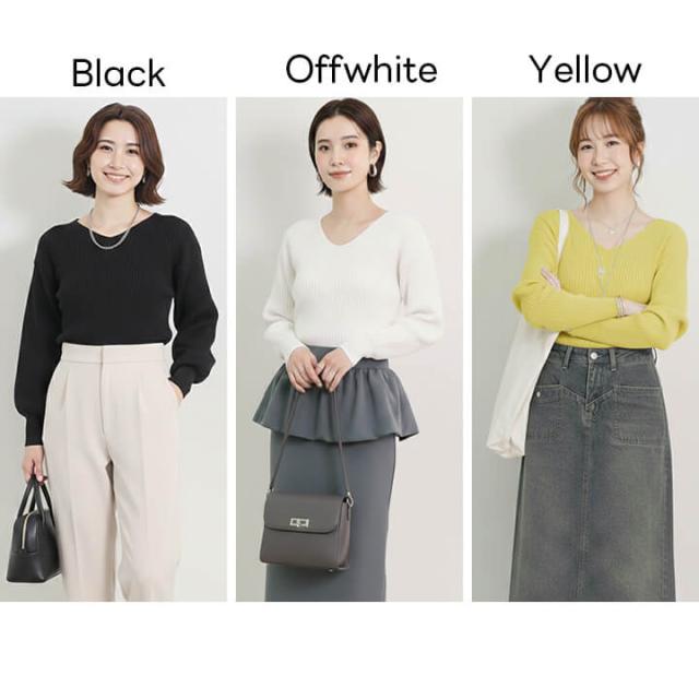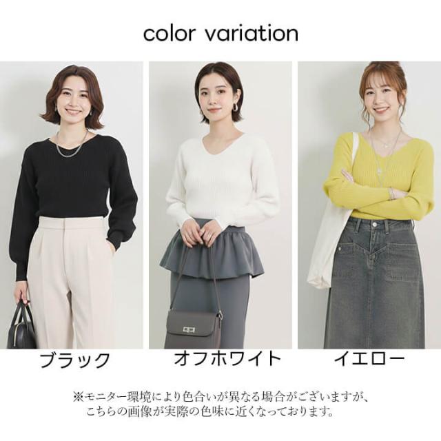 ■取扱商品の特徴: トップス カジュアル レディース リブニット ミドル丈 春 秋 冬 季節感 長袖 体型カバー ゆったり デイリー オフィス 大人 上品 シンプル ラフ Vネック リブ ストレスフリー 女性 可愛い 着回し 柔らか 快適 コーデ ふんわり フェミニン きれいめ こなれ感 二の腕カバー 抜け感 コットンリブ ニットプルオーバー 綿100% 20代 30代 40代 50代 10代 60代 ブラック オフホワイト イエロー 黒 白 乳白色 黄 F フリーサイズ ul25107001