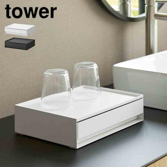 山崎実業 トレー付きアメニティ引き出し収納 タワー 公式 tower 10711 10712 ホワイト ブラック トレー トレイ アメニティボックス 卓上 キッチン ティーバッグ ドリンク グッズ ホテルライク 高級感 スチール ホテル おしゃれ シンプル 小物入れ 小物置き 引き出し ケース