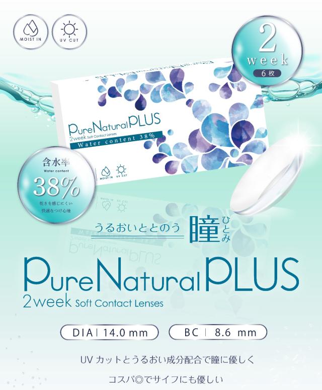 【1箱】ピュアナチュラル プラス 2ウィーク 6枚入り クリア コンタクトレンズ 2week