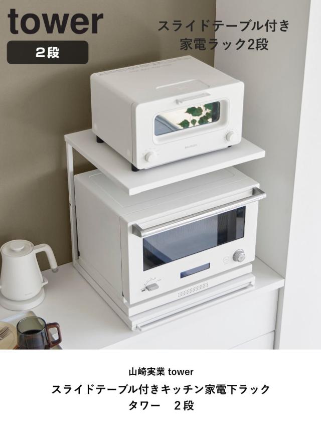 山崎実業 tower スライドテーブル付きキッチン家電下ラック タワー 2段 ( 4903208106528 タワーシリーズ キッチン 家電下ラック 2段 スライドテーブル付き キッチン家電 家電 ラック 2段ラック 一時置き場 )
