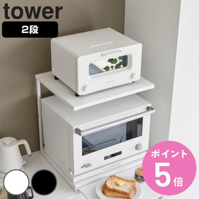 山崎実業 tower スライドテーブル付きキッチン家電下ラック タワー 2段 ( 4903208106528 タワーシリーズ キッチン 家電下ラック 2段 スライドテーブル付き キッチン家電 家電 ラック 2段ラック 一時置き場 )