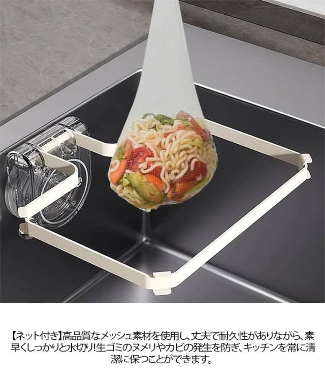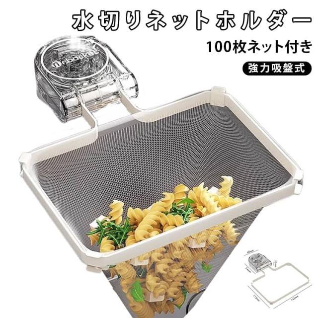 水切りネットホルダー 三角コーナー 強力吸盤 水切りネット 水切りホルダー シンク上 ゴミ受け 排水口ネット キッチン用品 台所用 生ゴミ処理 100枚ネット付き 取り付け簡単 折りたたみ 多機能 省スペース 送料無料