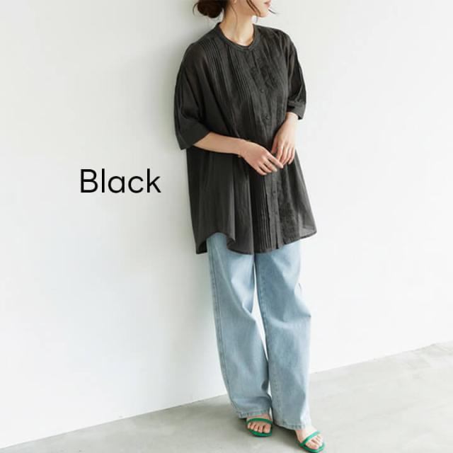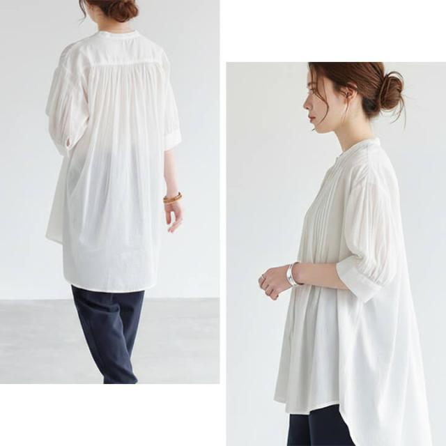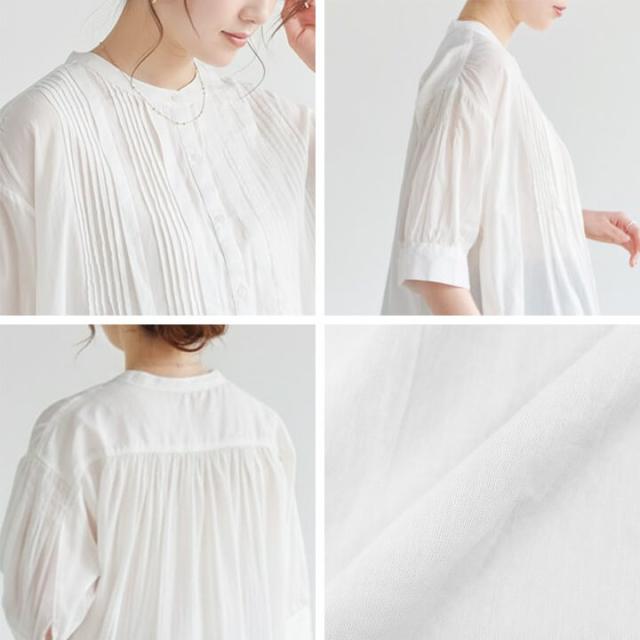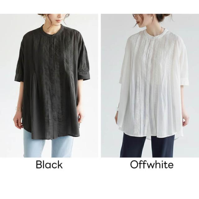 レディース カジュアル ブラウス ミドル丈 五分袖 春 夏 半袖 丸首 女性 可愛い 袖口 ギャザー 二の腕カバー ゆったり アウトスタイル ストレスフリー Aライン シルエット 体型カバー 柔らか 快適 デイリー コーデ 大人 上品 シンプル ナチュラル 天然素材 ラフ きれいめ こなれ感 抜け感 ピンタックブラウス ハイローヘム ハイロー丈 リゾート お出かけ 休日 クルーネック ノーカラー コットン 綿100% 20代 30代 40代 50代 10代 60代 ブラック オフホワイト 黒 乳白色 F フリーサイズ ul25289008