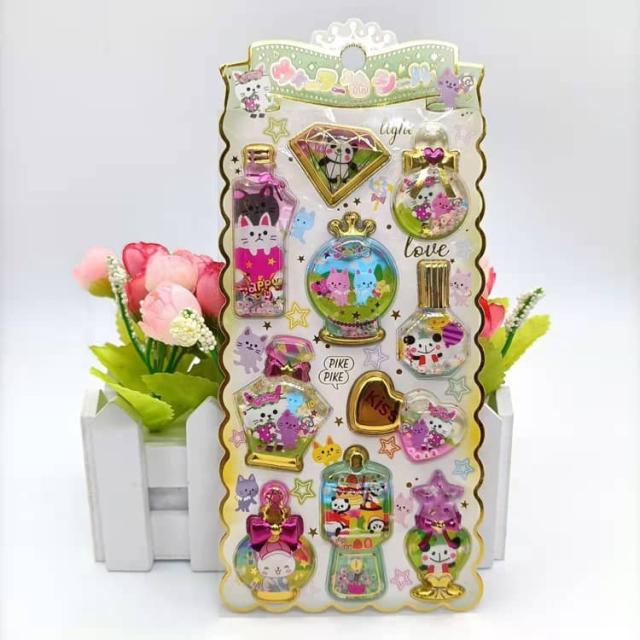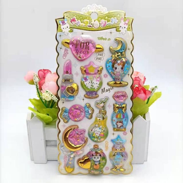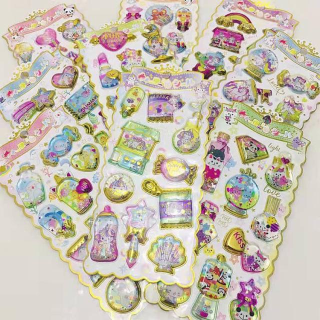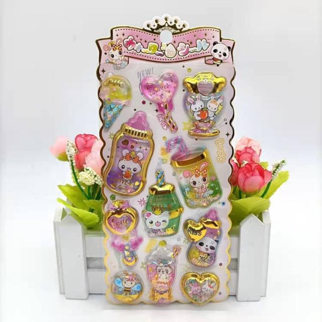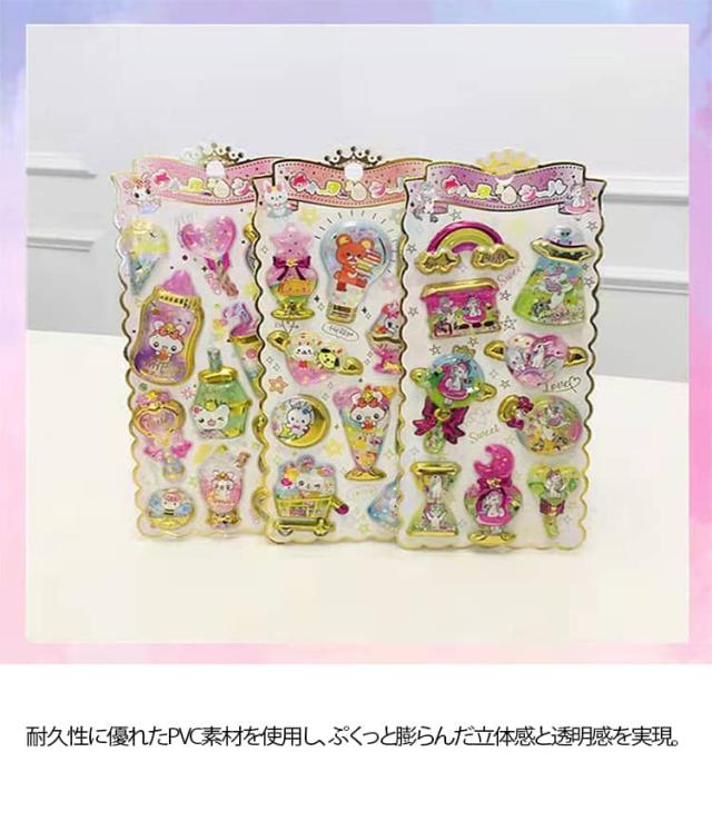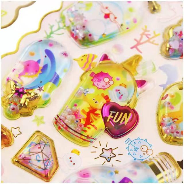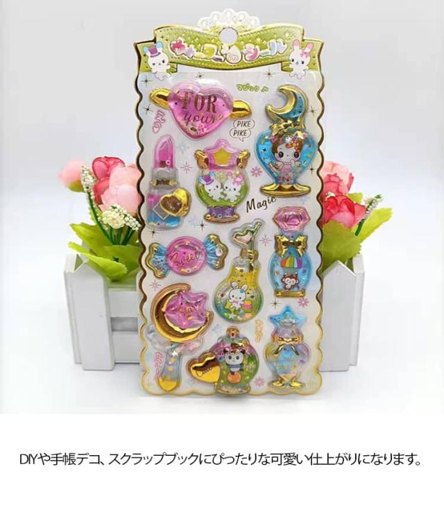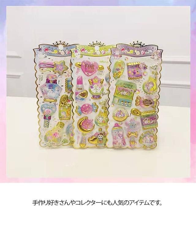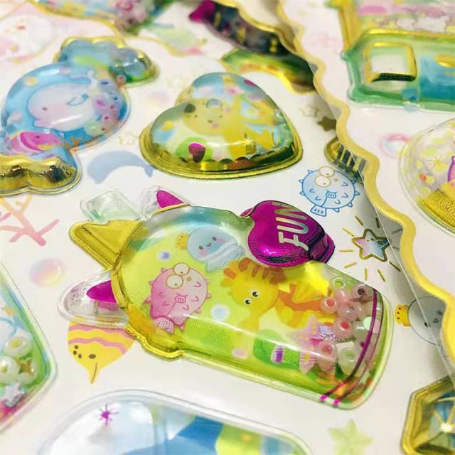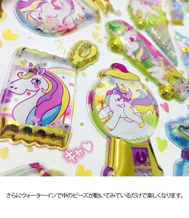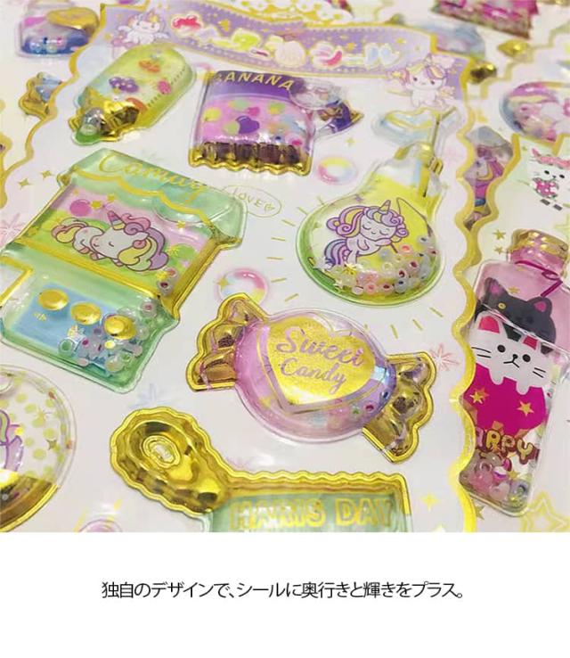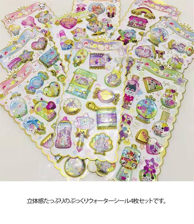 ウォーターイン 3D 立体 4枚セット 可愛い ぷっくり ごほうび ぷっくり DIY 手帳用 日記帳用 キラキラ 女の子 かわいい デコ SNS 子供 誕生日 ギフト プレゼント ウォーター ステッカー
