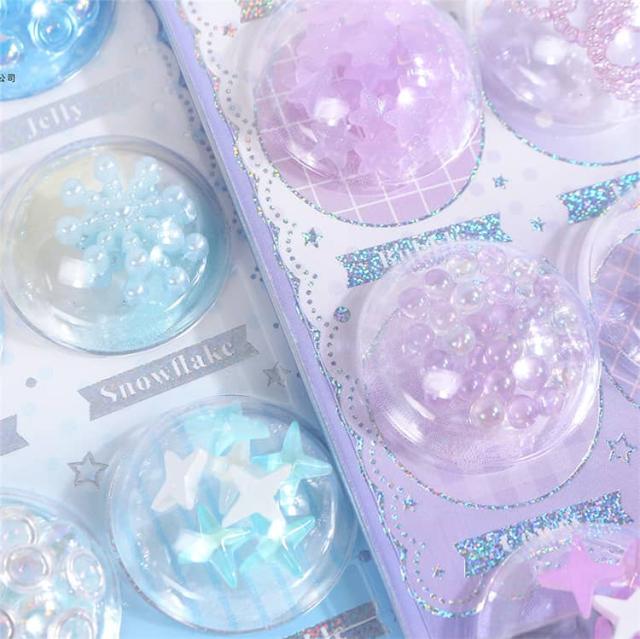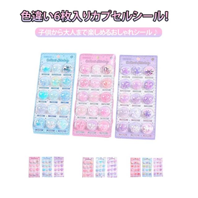 6枚入り カプセルシール セット 可愛い キャラクター 3D 立体 シール 貝 雪の花 月 ハート デコシール つやつや ぶっくり 子供 女の子 小学生 シール帳 マシュマロシール ぷくぷくシール 手帳 DIY おはじきシール カプセル 立体シール シャカシャカシール
