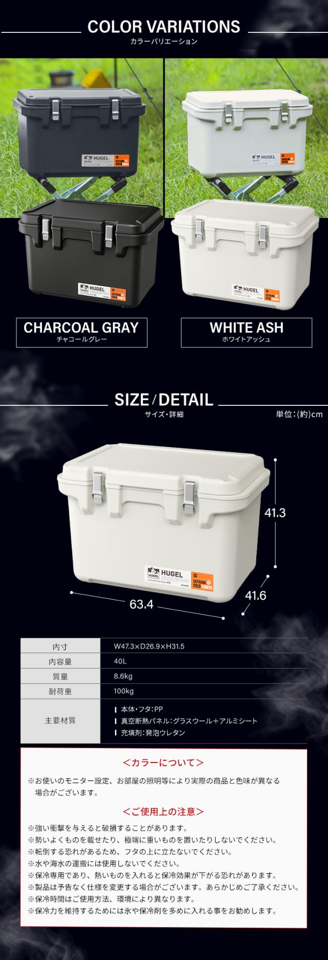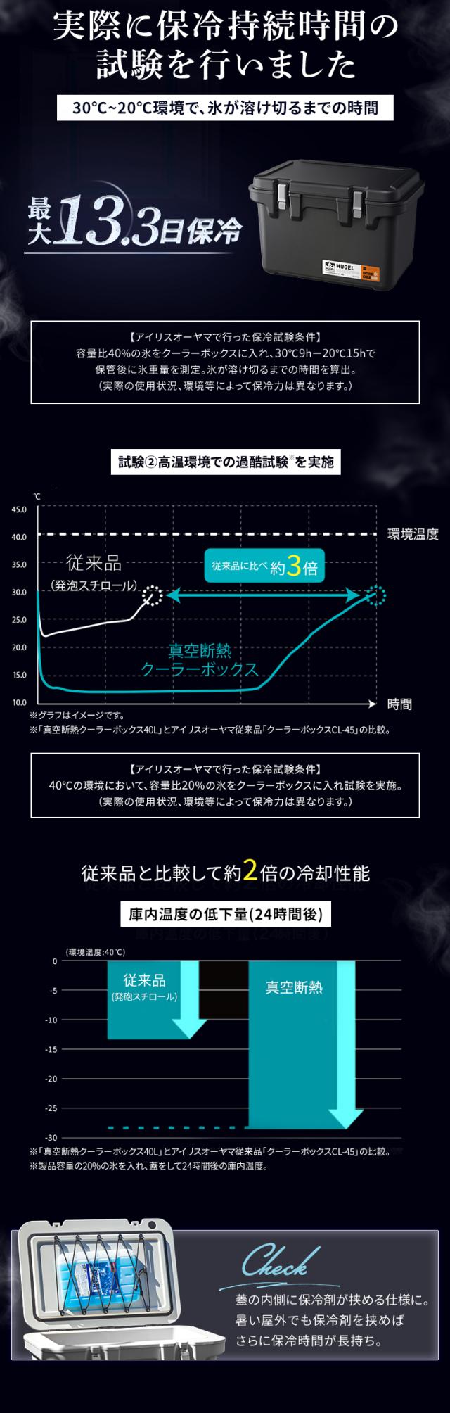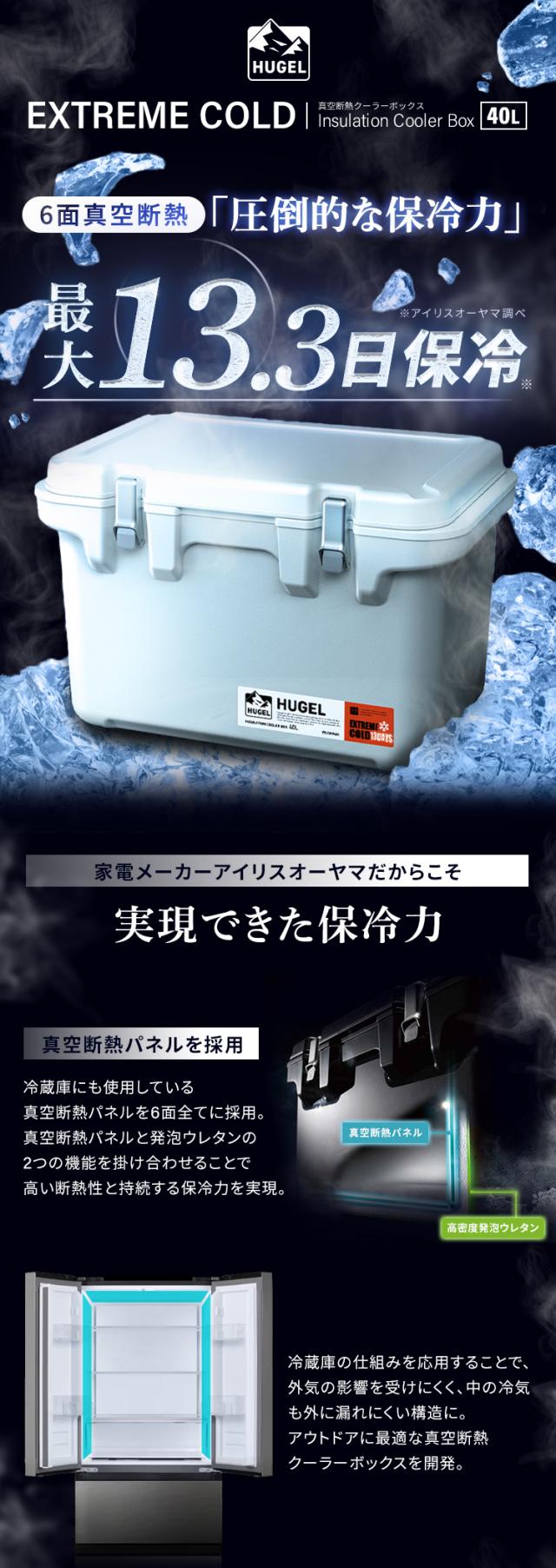 クーラーボックス 保冷ボックス 大型 大容量 40L 保冷力 最大 13.3日 ハード 真空断熱 釣り スポーツ キャンプ アウトドア レジャー ペットボトル 飲み物 缶 バーベキュー 座れる 40リットル クーラーバッグ BOX アイリスオーヤマ HUGEL VITC-40 *