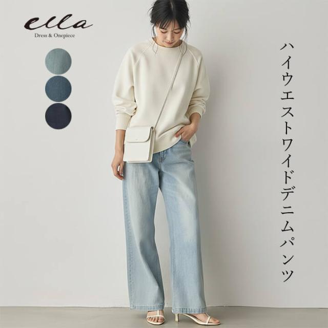 デニム ハイウエスト パンツ ボトムス カジュアル レディース オールシーズン リラックス 脚長効果 綺麗 オシャレ 体型カバー ストレッチ 抜け感 快適 ストレスフリー 穿き心地 ワイドシルエット デイリー コーデ 大人 シンプル すっきり ラフ ズボン 綿100% 後ろゴム ハードウォッシュ ミディアムウォッシュ ワンウォッシュ 水色 青 紺 20代 30代 40代 50代 10代 60代 M L XL 9号 11号 13号 ss1005