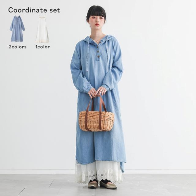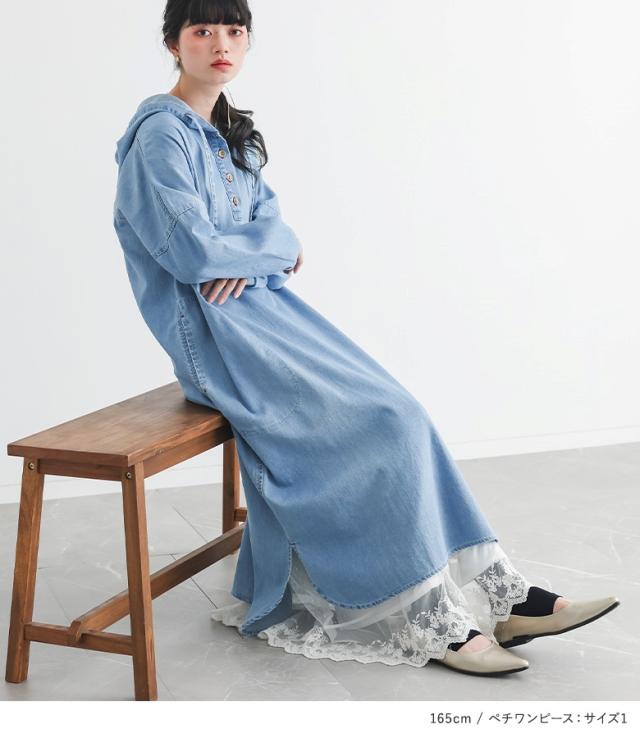『デニムフードワンピース×贅沢レースロングペチワンピースコーデ2点SET』【メール便不可】【30】[2点コーデセット 2026 レディース デニム ロングデニム デニムワンピース ワンピース ペチワンピース ペチコート]