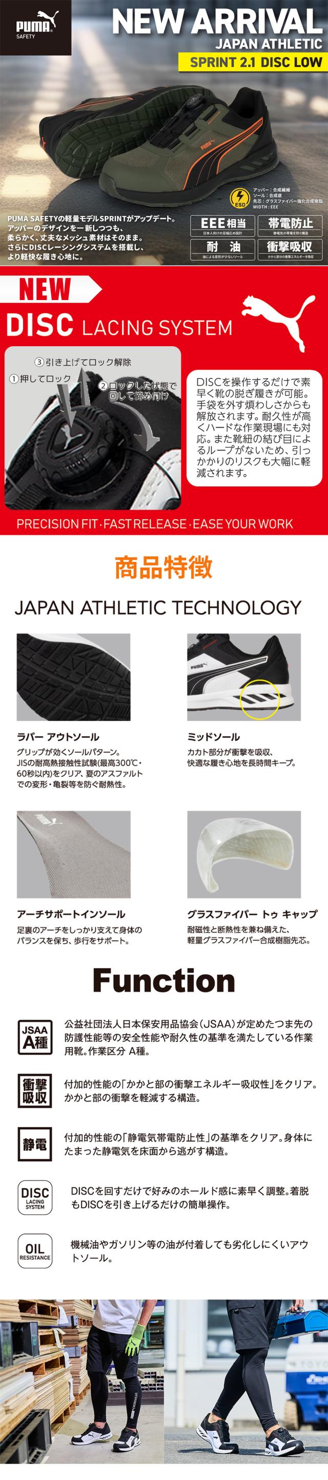 安全靴 プーマ PUMA SPRINT 2.1 DISC LOW スプリント 2.1 ディスク ロー 新商品 新作 マジックテープ JSAA規格 プロテクティブスニーカー かっこいい おしゃれ 人気 軽量 メンズ レディース 衝撃吸収 耐油 建築 建設 運