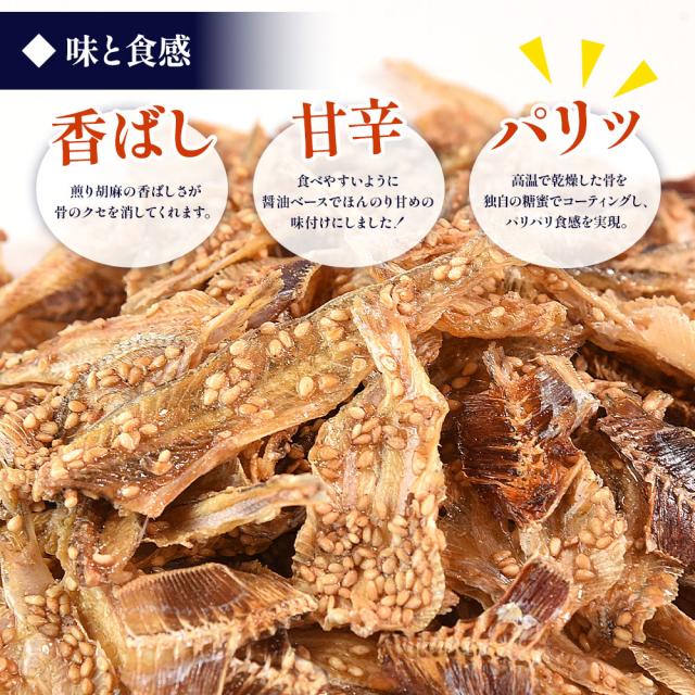ほんのり甘めの味付けのパリパリ食感で、骨を丸ごと食べられます。