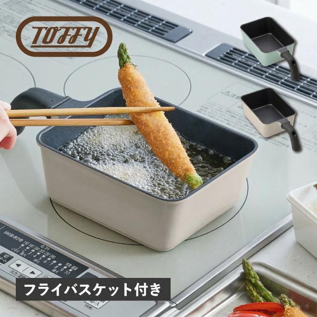 Toffy トフィー 天ぷら鍋 片手鍋 揚げ鍋 角型 IH ガス対応 フライバスケット付き フッ素 コーティング K-NB5
