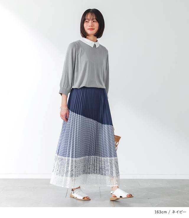 スカート ロング丈 レディース ボトムス プリーツスカート レース ストライプ柄 無地 ウエストゴム 裏地付き 異素材 ゆったり 春 夏 秋 【TP】 ロングスカート マキシスカート レーススカート n'OrLABEL ノアールレーベル 大人女子 大人可愛い お洒落可愛い 大人カジュアル ベーシック オフィスカジュアル 上品 きれいめ ナチュラル マキシ丈 プリーツ アコーディオンプリーツ マルチストライプ 花柄 配色 異素材MIX おうちで洗える 落ち感 ロングシーズン カジュアル シンプル キレカジ フェミニン ガーリー ゆる 楽ちん ストレスフリー 動きやすい Sサイズ Mサイズ Lサイズ LLサイズ 3Lサイズ XLサイズ フリーサイズ ぽっちゃり 体型カバー 体形カバー 大きいサイズ プラスサイズ 10代 20代 30代 40代 50代 60代 低身長 高身長 女子会 オフィス 通勤 通学 お買い物 お出掛け 旅行 リゾート レジャー おしゃれ お洒落 トレンド 流行 osharewalker オシャレウォーカー おしゃれうぉーかー ネイビー 紺 ブラック 黒 マルチカラー[ID]11bp05i[n'OrLABEL異素材プリーツ切替スカート]
