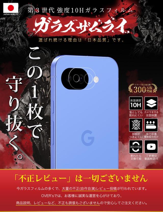 商品名:Google Pixel 10a カメラフィルム ガラスフィルム 全面保護 レンズカバー 10H ガラスザムライ グーグル ピクセル 保護フィルム OVER`s オーバーズ