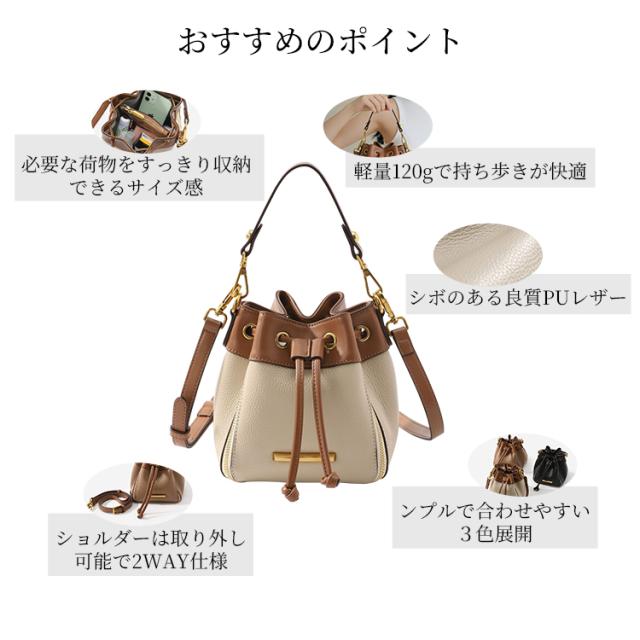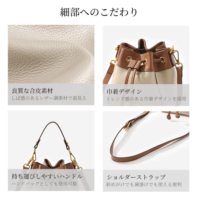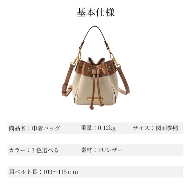 3WAY 巾着バッグ PU レザー 軽量 120g 内ポケット付き シボ加工 マチ付き 3 色展開 手持ち ショルダー 斜めがけ バッグ