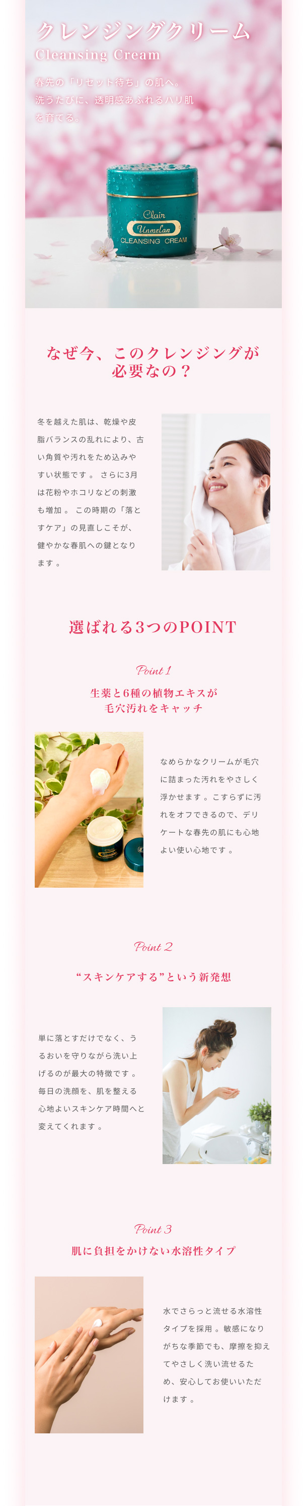 生薬を配合し、毛穴に詰まった汚れを浮かしてキャッチ。お肌の潤いを守りながら落とします。「スキンケアする」クレンジング。洗うたび透明感の張るお肌に。