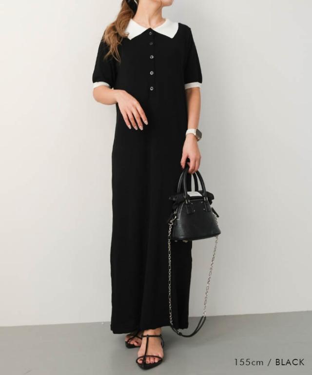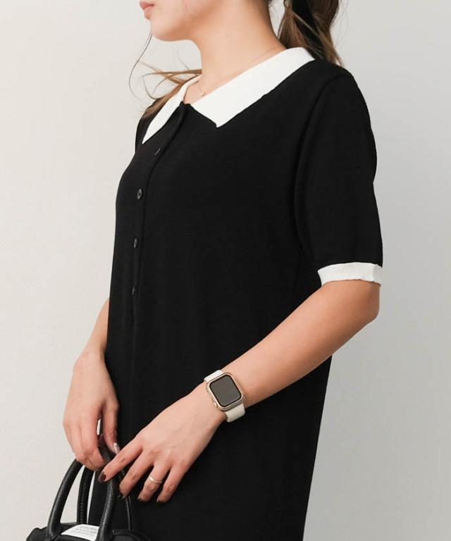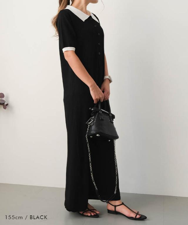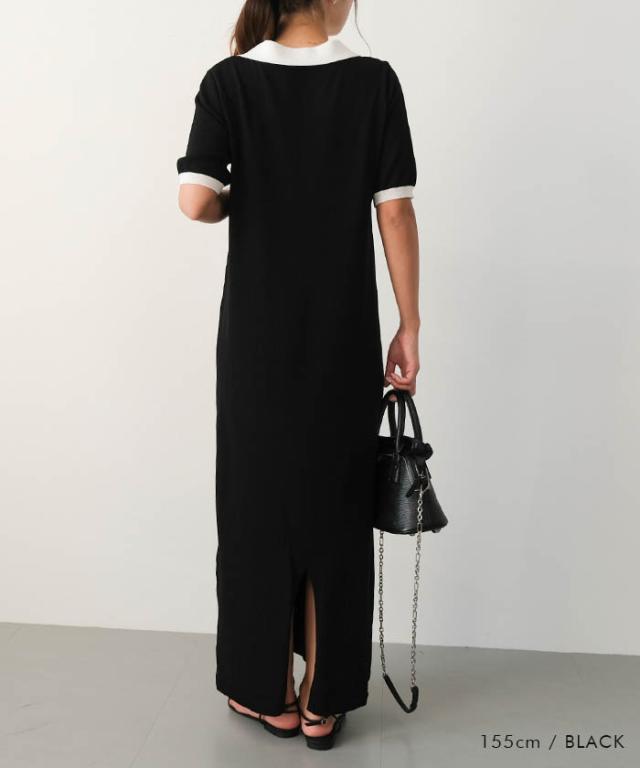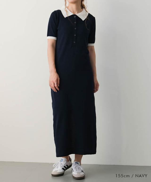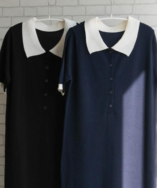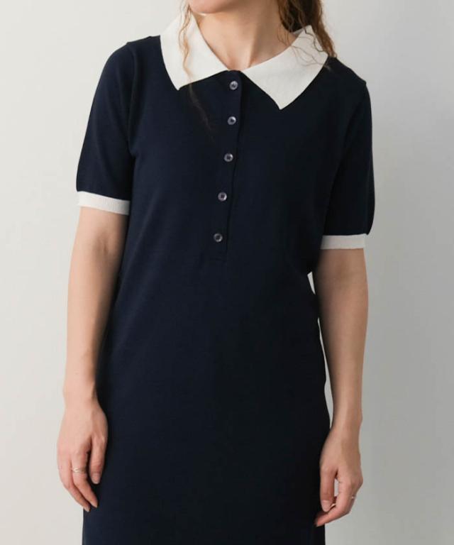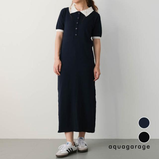 ≪ゆうメール便配送30・代引不可≫ バイカラー襟付きワンピース 春 夏 アクアガレージ aquagarage