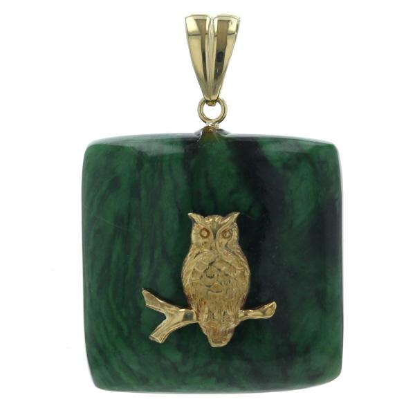 K18YG イエローゴールド ネックレストップ 染色石 スクエアカボション 梟 フクロウ モチーフ アニマル【新品仕上済】【zz】【中古】