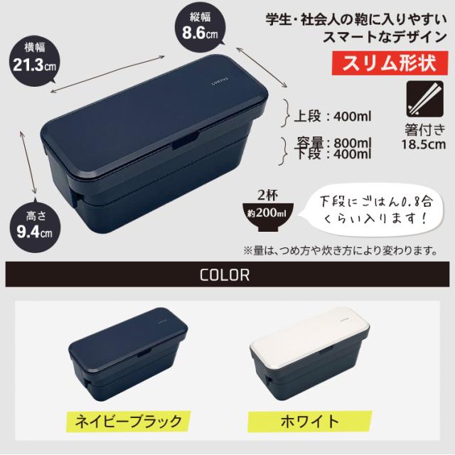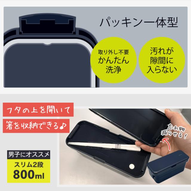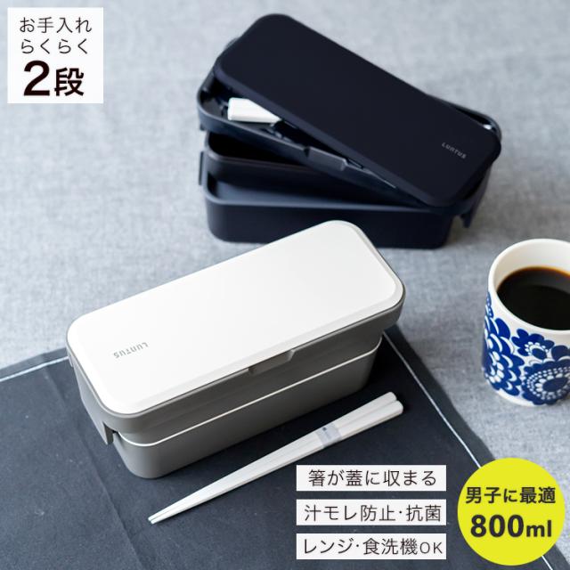 弁当箱 お弁当箱 ランチボックス 男子 高校生 中学生 大人 2段 スリム 抗菌 レンジ対応 冷蔵 食洗機対応 汁モレ防止 お手入れ簡単 パッキン一体 ラク家事 時短 入園入学 新生活 【 アスベル ランタス ASVEL LUNTUS WS-T800 】